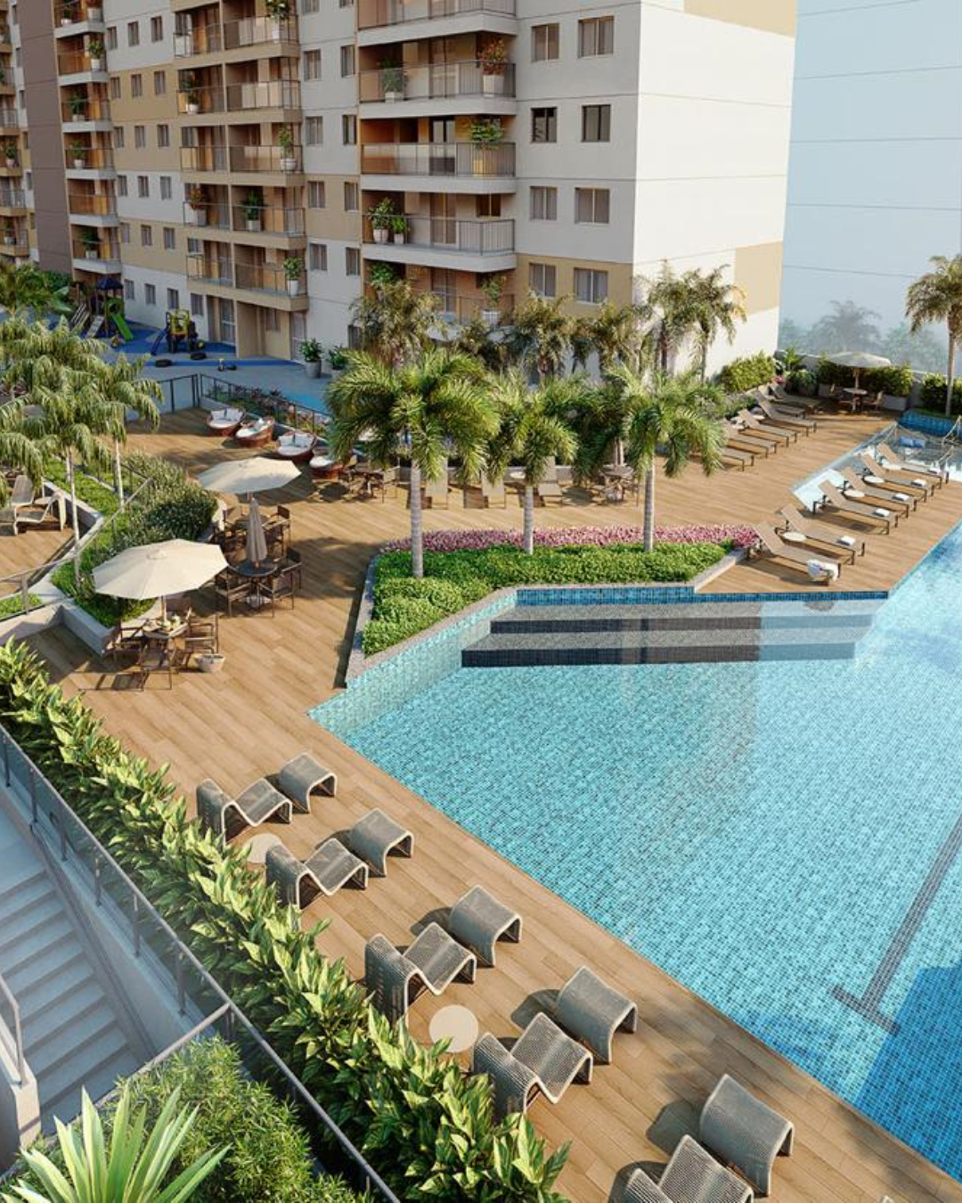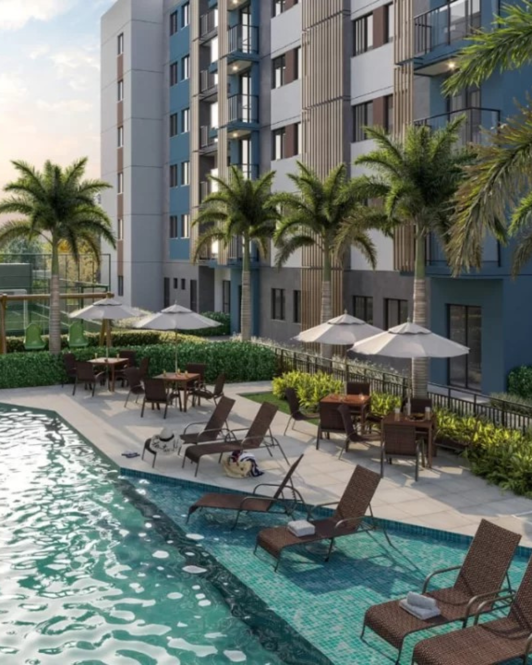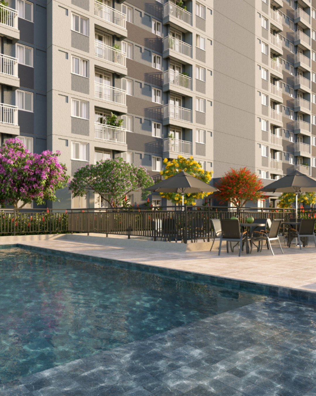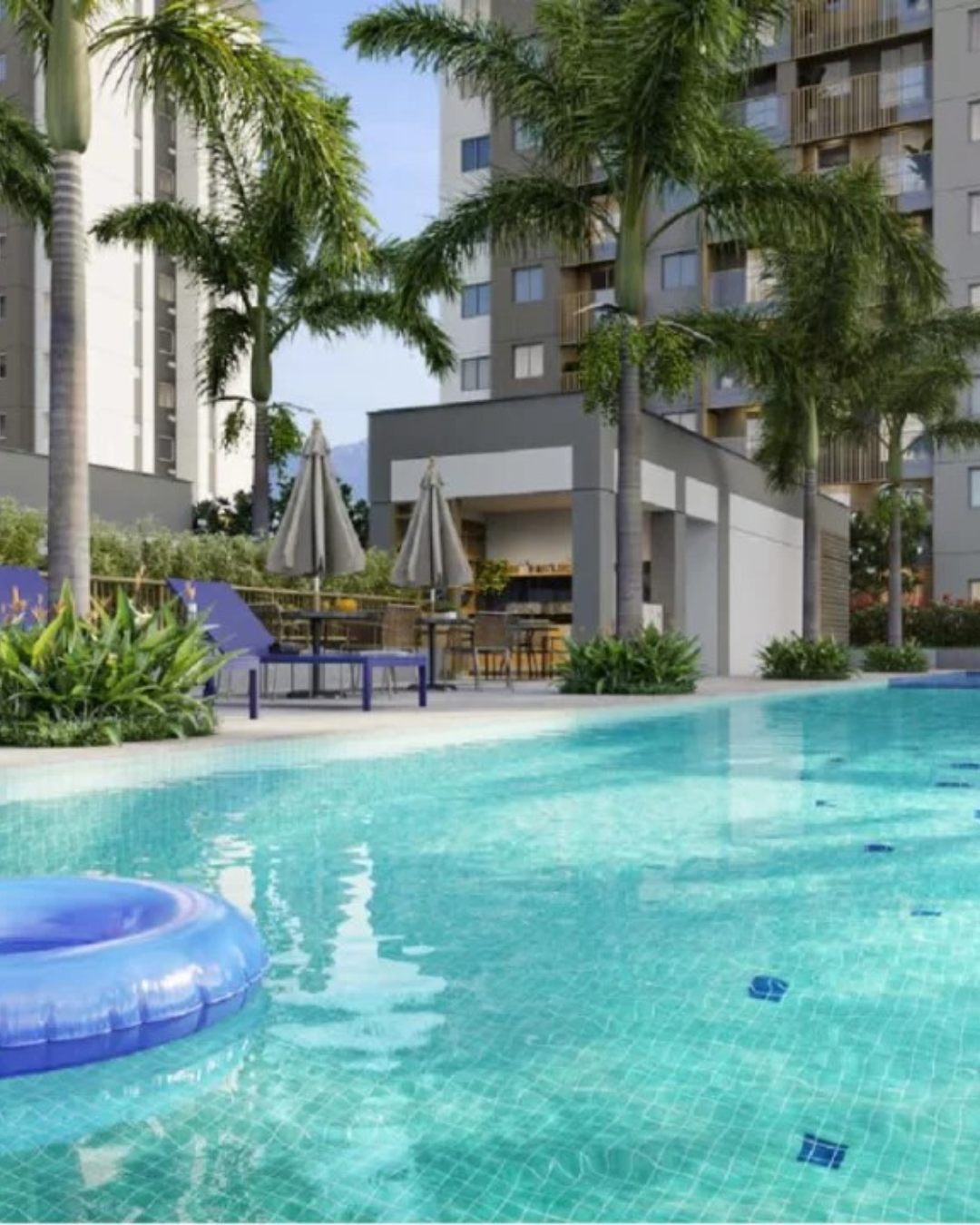 Imóveis com áreas comuns decoradas, piscina, churrasqueira entre outras.